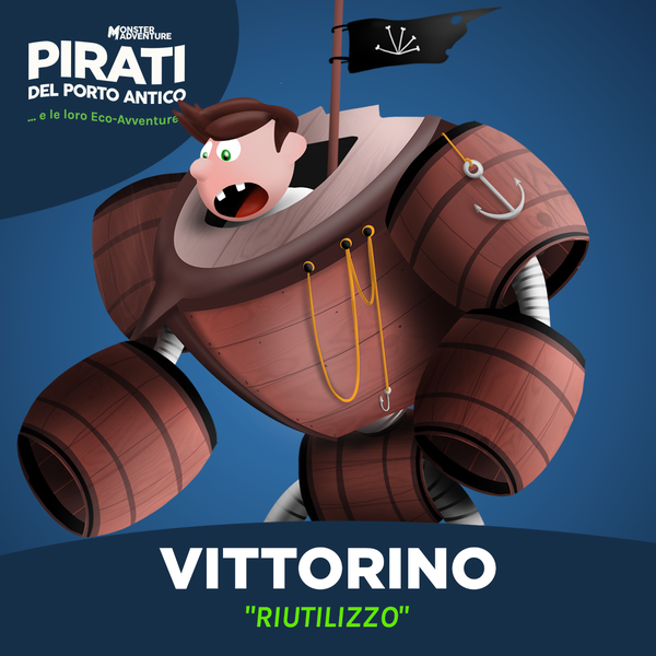 Il più piccolo della combriccola è Vittorino, un bimbo così piccolo che gli altri pirati ridono di lui. Ma lui non si lascia scoraggiare, il suo sogno è quello di diventare un grande pirata e navigare in tutto il mondo. Ma Vittorino è anche molto intelligente e con tantissima inventiva e creatività scoprirà che per diventare un pirata “nuovo” bisogna utilizzare qualcosa di “vecchio”.