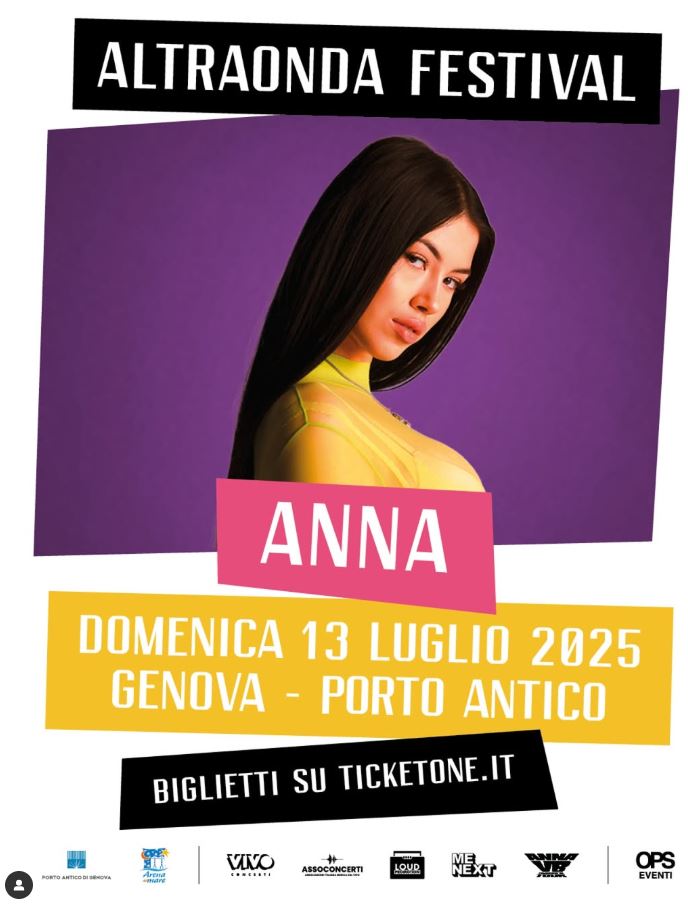 13Luglio21:3023:59ANNA PER ALTRAONDA FESTIVAL a PORTO ANTICO ESTATESPETTACOLO 2025