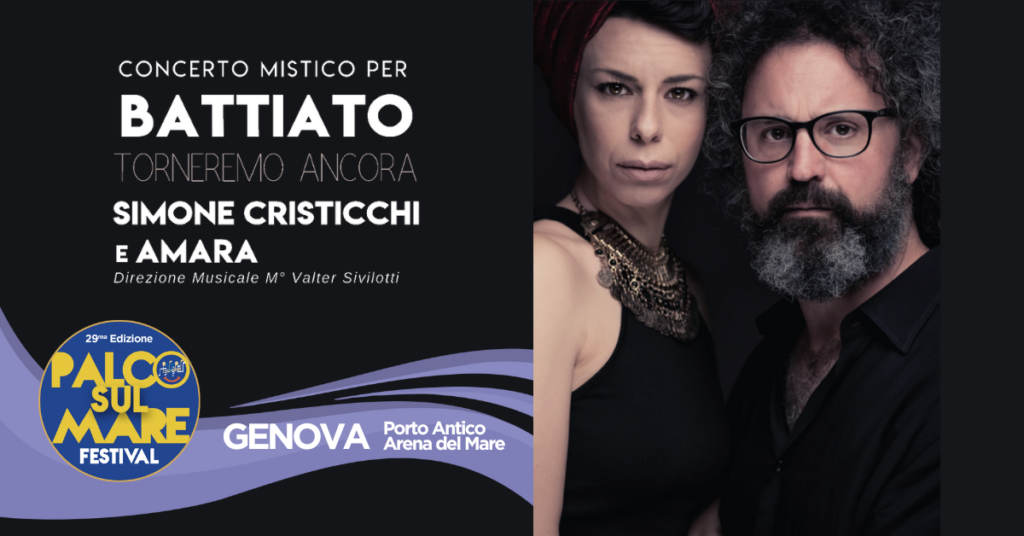 Mercoledì 31 luglio 2023 all’Arena del Mare di Genova un evento unico con Simone Cristicchi e Amara in “Concerto mistico per Battiato”.