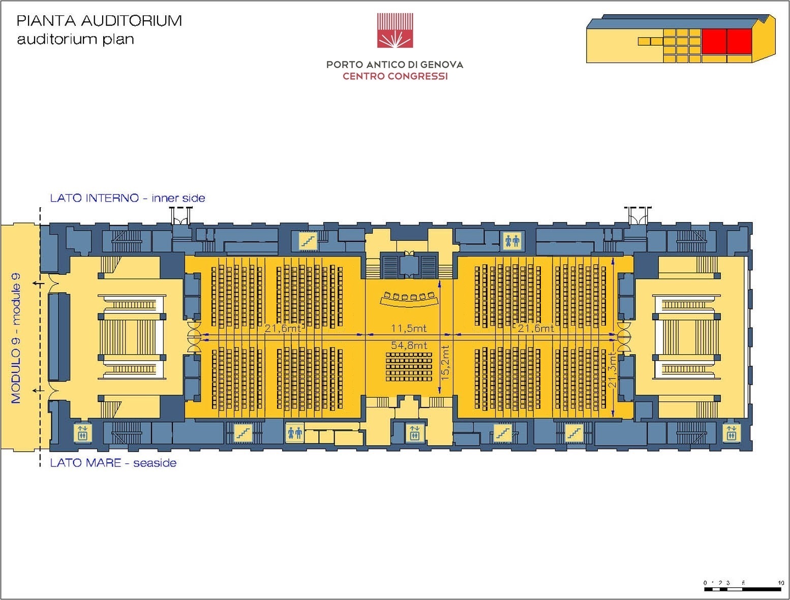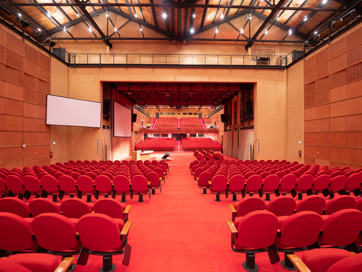 Composto dalle due sale speculari Maestrale e Grecale collegate dal palcoscenico centrale, l’Auditorium ha una capienza di 1.480 posti ed è servito da un foyer attrezzato divisibile.